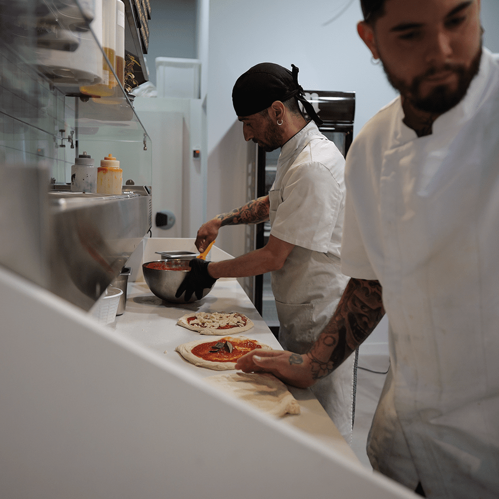 Bruno, nuestro pizzaiolo, es un chico argentino afincado en Madrid, que trabajó la pizza durante mucho tiempo. Y vamos a ser sinceros, vimos en un famoso portal de anuncios que buscaba volver a trabajar la masa, lo vimos claro, tenía que ser el pizzaiolo para nuestra pizzería en Gandia. Bruno no dudó, vino a pasar un fin de semana a Gandia, a conocer el sitio, a conocernos a nosotros, y se enamoró. Por eso, él y su familia han cambiado el barullo de Madrid por el calor y el sol de las pizzas en Gandia.